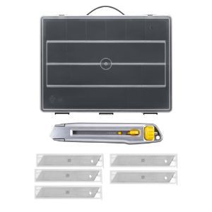 STHT10018-9 Interlock Afbreekmes 18mm + 5 x 10 Afbreekmesjes 18mm in 14 vaks organiser