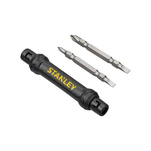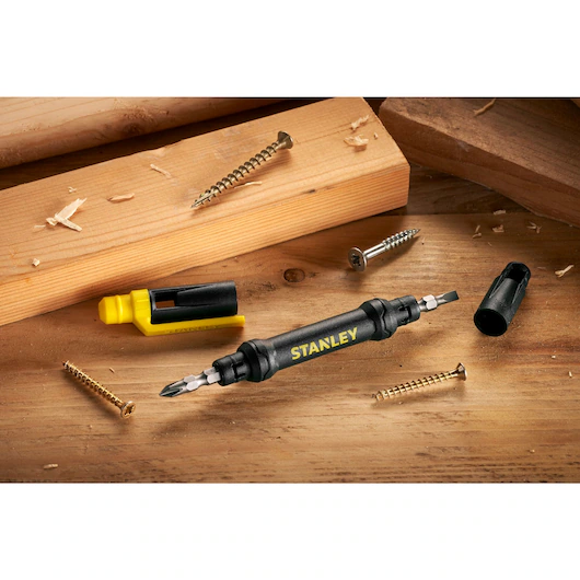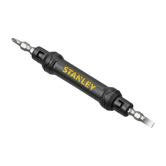 De STANLEY Screwdriver Pocket Driver Merchandiser wordt geleverd met twee dubbelzijdige bits. De magnetische bits hebben een antislip gestructureerd oppervlak, zodat ze kleine schroeven aantrekken en vasthouden die niet wegglijden, barsten of afbladderen. Bovendien zorgt het exclusieve S2 Tool Steel gehard voor maximale duurzaamheid. De zachte bi-materiaal grip voor verbeterd comfort en controle. Zinken bladschuif voor duurzaamheid en sterkte.
