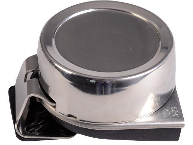 Compacte elektrische hoorn met RVS kap en kunststof onderzijde. Wordt geleverd inclusief montage beugel met vibratie absorptie rubber.