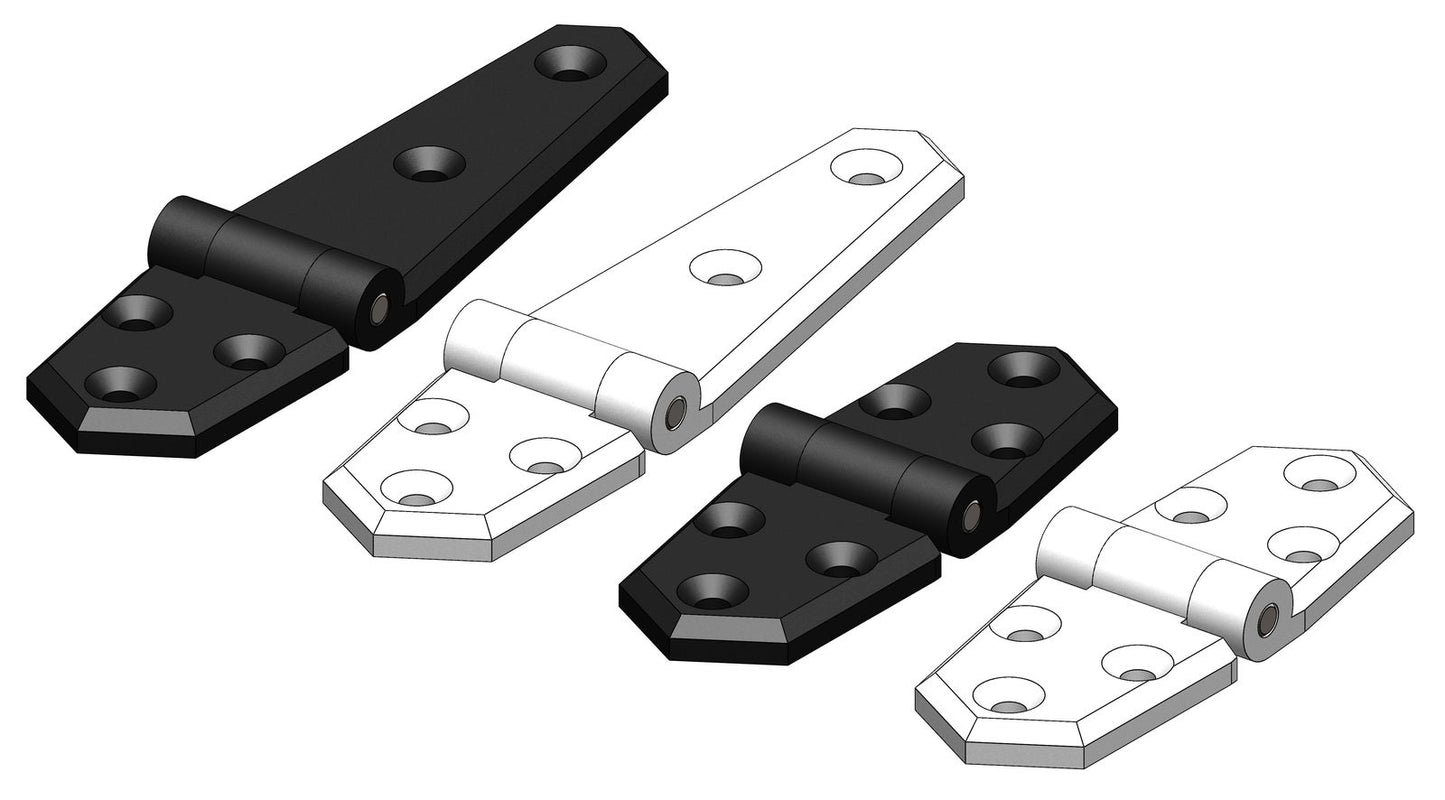 De schanieren van TruDesign zijn gegoten uit een glasvezel versterkte nyloncomposiet.