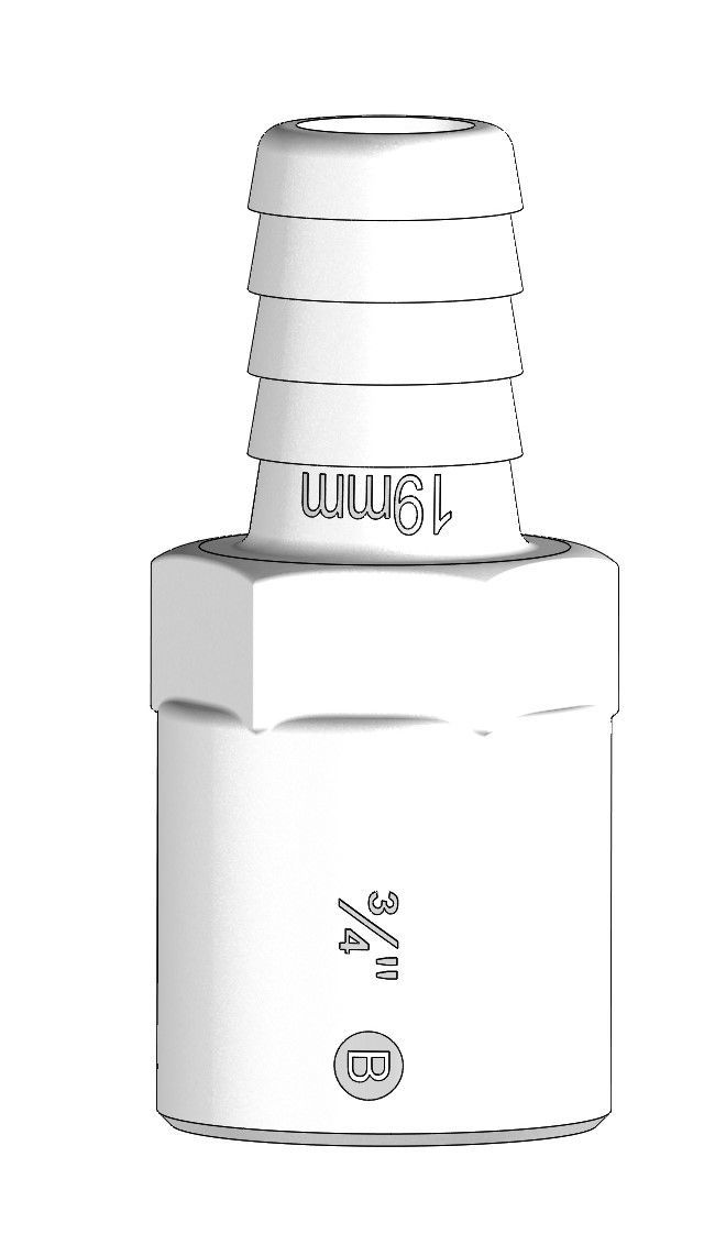 TruDesign Slangpilaar 3/4 inch BSP binnendraad met 19 mm slangtule wit kunststof