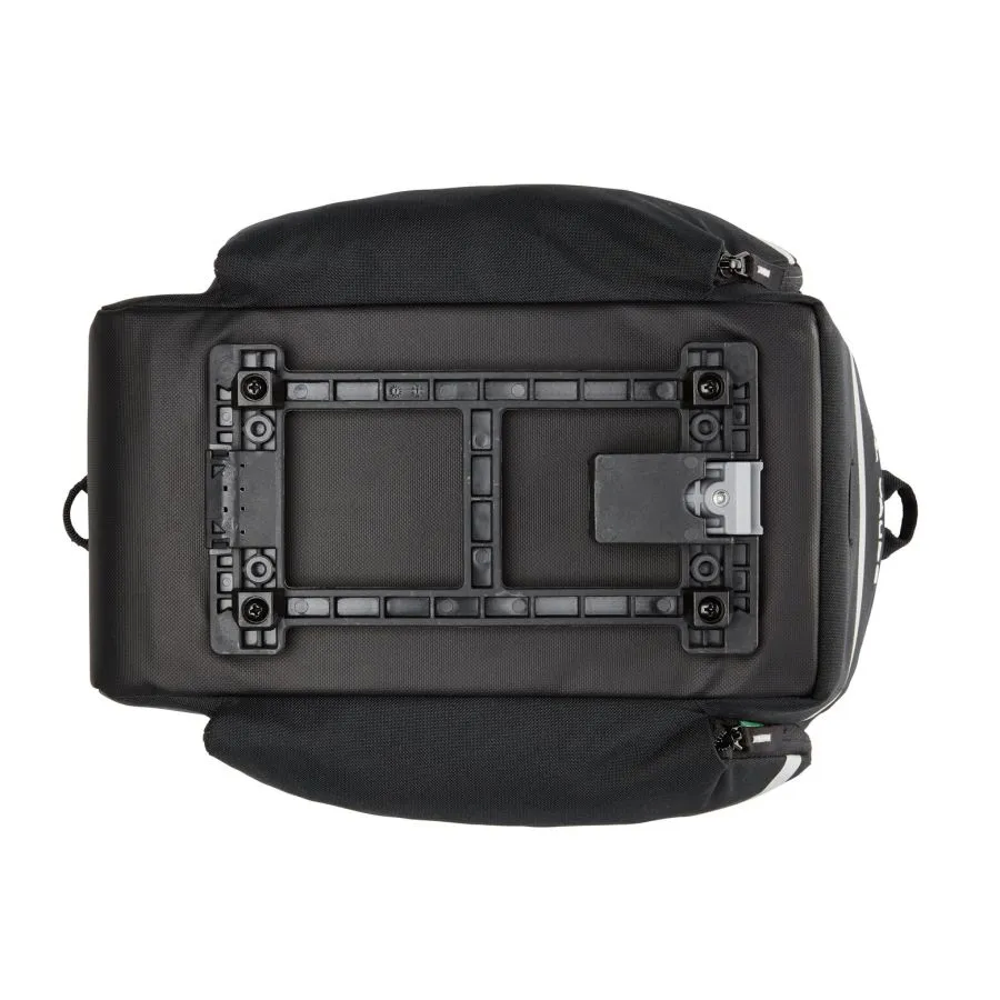 De fietstas Silkroad Plus (MIK) vervoert de bagage net zo ver als de benen willen trappen - of de accu van de e-bike het uithoudt. Deze veelzijdige fietsbagagedragertas met 9 liter volume heeft twee uitklapbare zijvakken, die indien nodig 7 liter meer opbergruimte beschikbaar stellen. Daarnaast scoort deze fietstas met talrijke functionele details - zoals bijvoorbeeld een bagagespin voor extra bagage (bijv. een jack) evenals een vak met ritssluiting in de deksel en reflecterende elementen. Een ander pluspunt is een meegeleverde, afneembare schouderriem, waarmee deze bagagedragertas indien nodig ook als schoudertas gebruikt kan worden. Dankzij het MIK-bevestigingssysteem laat de Silkroad Plus (MIK) biketas zich snel en veilig op alle fietsen met MIK-bagagedragers bevestigen. Dit product is met Eco Finish milieuvriendelijk waterafstotend gemaakt.